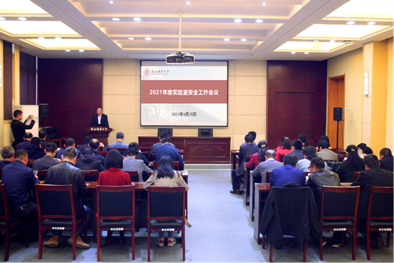 4月28日下午,公司2021年度实验室安全工作会议在长安校区文汇楼A区一层报告厅召开。会议由实验室建设与管理处处长李保新主持。好博体育党委书记王明道、副经理李君轶、公司实验室安全督导贠蒲军、公司实验中心主任李敏睿、实验中心老师贠疆参加了会议。