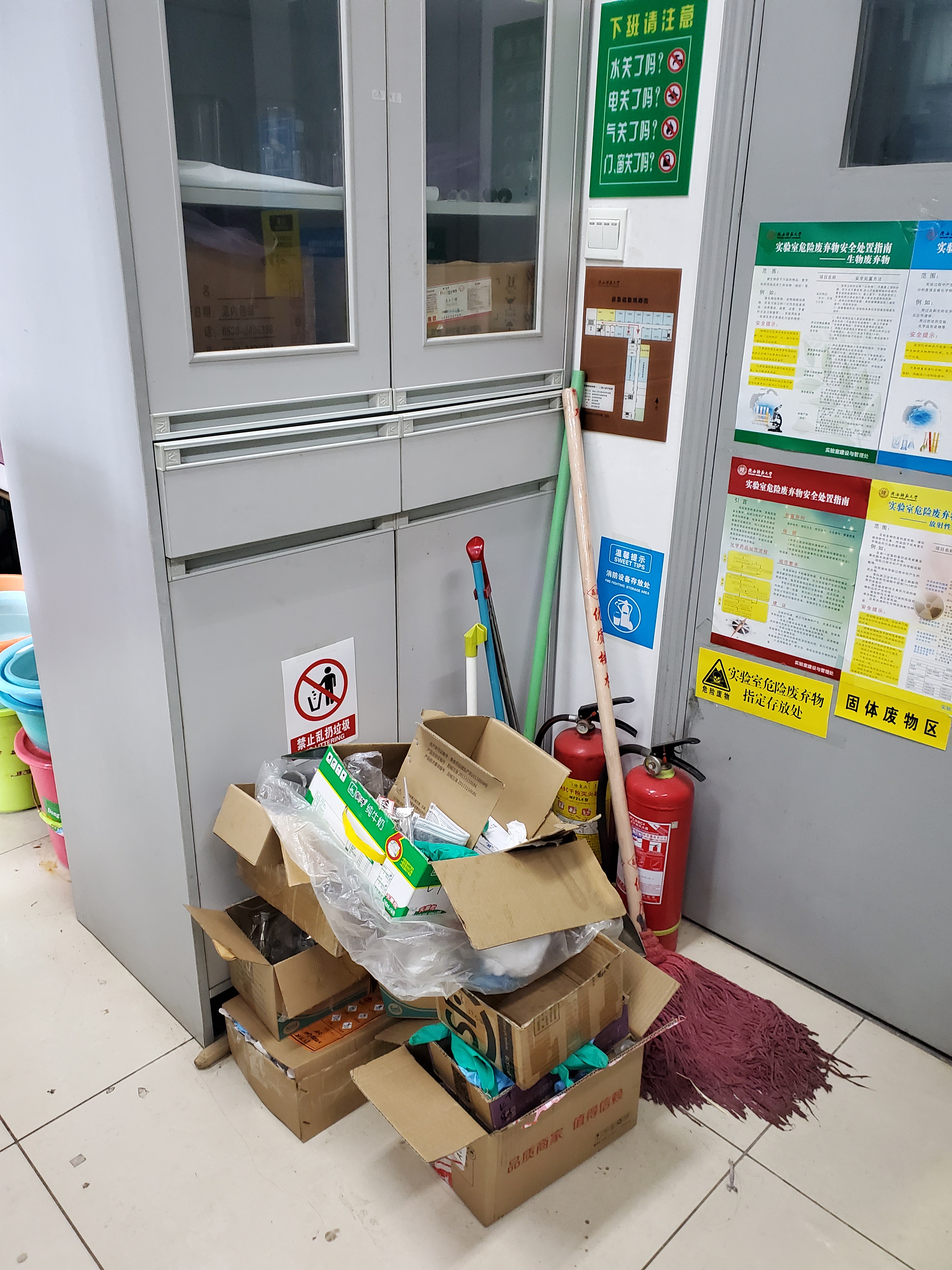 3.1612(安全员:李小平老师)药品柜里的易制毒、易爆及特别管控类药品没有按照要求粘贴黄色二维码标签;实验室内固废及杂物没有及时清理。