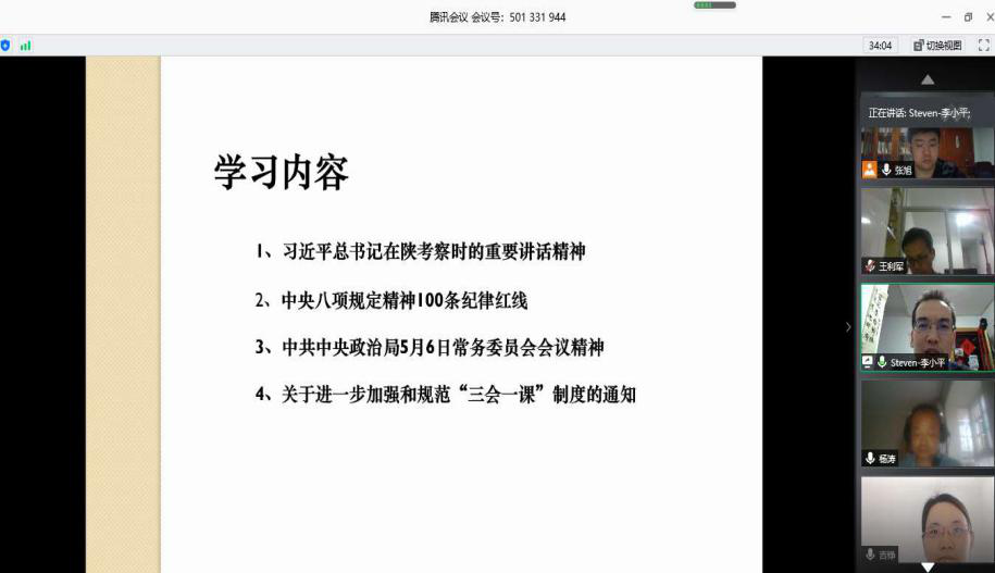 “三会一课”制度是党内组织生活的基本制度,是健全党的组织生活,严格党员管理,加强党员教育的重要措施。今年公司教工党支部克服疫情影响,依托“三会一课”通过“线上”+“线下”的方式,扎实做好党员日常学习。