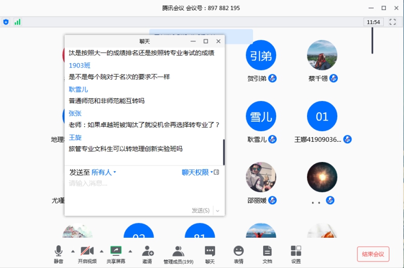 教学秘书张凯老师解读了公司《关于做好2019级本科生线上专业分流工作的通知》的文件精神,对2019级本科专业分流(转专业)的实施方式、报名时间、材料要求、考核方式等均做了具体说明,并对此次专业分流的专业选择、面试、表格报送等等事项作说明。李晶副经理讲话,她强调这次专业分流是公司人才培养模式有益探索,希望同学们要高度重视,抱着对自己负责任的态度进行专业选择,按时提交材料。党委副书记郝高建介绍了公司各专业的相关就业情况,建议同学们选择专业时,应充分了解个人兴趣,志存高远,要了解专业特点,做出适合自己的选择。接着,针对同学和家长提出的卓越班能否参加专业分流、非师范能否转师范生、文理专业能否互转等问题各位老师做了耐心的解答。