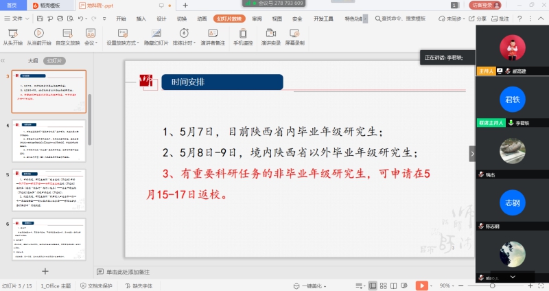 最后,经理周正朝做了总结。他希望各位导师一是要提高政治站位,高度重视疫情防控工作的重要性;二是要认真领会相关精神,落实导师第一责任人的职责,将各项工作不折不扣地贯彻到位;三是要关注员工返校前、 返校中、返校后的安全,确保工作万无一失,维护好校园稳定安全;四是要密切师生间的联系,多交流沟通,及时解决员工遇到的困难与问题;五是要关注所带研究生的就业,在考博、复试等环节支持和帮助员工,全力帮助毕业生高质量就业。