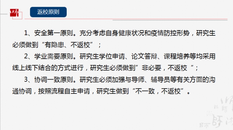 各位导师结合公司相关文件精神,就研究生返校时间、论文答辩等相关问题进行了交流讨论,并就相关情况作了反馈。