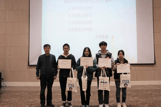 本次知识竞赛由公司全部本科生和研究生共同参加,同学们先在题库学习后进行了闭卷答题(初赛),各级辅导员阅卷后筛选出本年级4个优胜者,再混合组成四个代表队进行决赛。11月17日晚7点,决赛在热烈的氛围中拉开序幕,公司副经理段克勤老师首先为比赛致辞,他强调“无论是从实验室的使用功能,还是从实验室的自身发展来看,我们都应该强调把实验室的安全防范作为实验室管理的基础”,并郑重宣布本届实验安全知识竞赛决赛正式开始。随后四个代表队分别通过必答题、抢答题环节、隐患查找和实验操作环节决出一等奖1组、二等奖1组、三等奖2组。比赛结束之后,评委老师们分别为同学们进行颁奖,并进行合影留念。