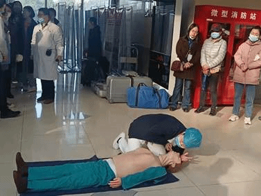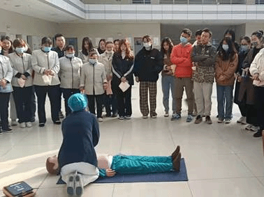 根据演练安排,格物楼前随后开展了灭火器和灭火毯的使用方法、心肺复苏训练和应急喷淋训练等应急救助培训。校医院医务人员向师生讲解了烧伤、烫伤后紧急处理的措施及注意事项,教授了除颤仪的使用方法和心肺复苏的技巧等,并指导师生进行实践操作。