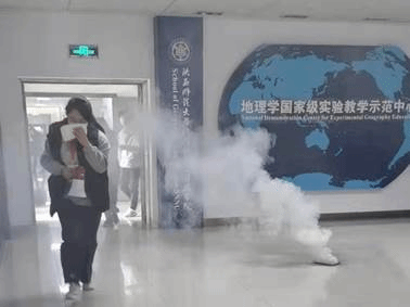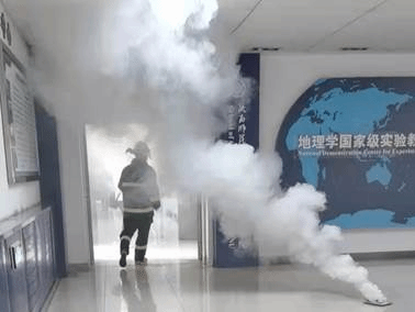 警报信号响起,各应急小组遵从指挥、协调一致,迅速到达指定岗位,指挥楼内师生用湿毛巾捂住口鼻,低头弯腰呈一路纵队有序逃离,同时仔细排查室内人员数量,确保不遗漏一名人员,将大家有序疏散到安全地点。