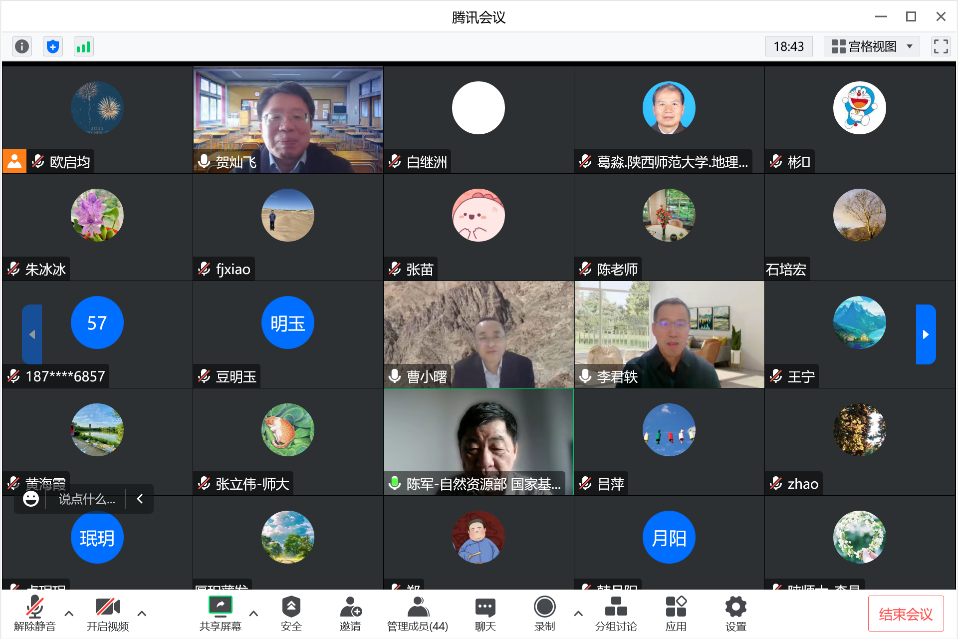 论坛首先由副董事长董治宝教授致辞,报告分别由李君轶教授和曹小曙教授主持,中国科公司院士、中国科公司生态环境研究中心、公司杰出员工傅伯杰研究员;中国工程院院士,中国科公司兰州分院分党组书记、经理、中国科公司西北生态环境资源研究院经理、公司杰出员工冯起研究员;中国科公司院士、长安大学彭建兵教授;中国工程院院士、自然资源部国家基础地理信息中心陈军教授;国家杰出青年基金获得者、北京大学贺灿飞教授;北京师范大学宋长青教授;广州大学地理科学公司朱竑教授;国家自然科学基金委地球科学部熊巨华研究员等8位专家分别围绕面向可持续发展的地理学、国家公园建设的理论与实践、生态秦岭研究构想、实景三维中国建设的方向与任务、 新时期中国区域发展研究、复杂地理系统认识、西方再野化研究启示与中国实践、地理科学的基金申请资助简介等主题,做了精彩纷呈的学术报告。论坛线上线下交流活跃,学术气氛浓厚。